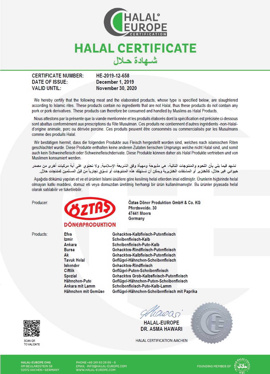 - Die örtliche Überwachung erfolgt durch authorisierte Halal-Prüfer.
